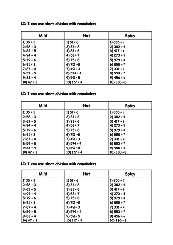 Year 5 Short Division Worksheets Differentiated And Other Resources Teaching Resources